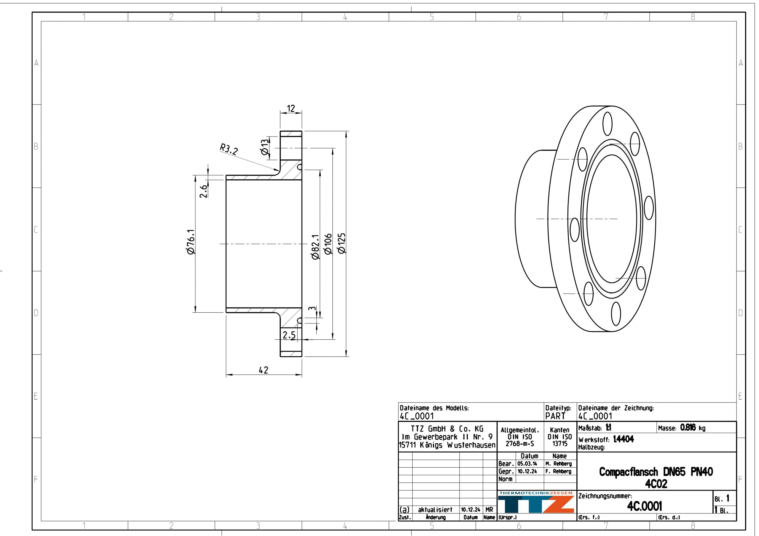 The revolutionary COMPAC flange variant DN65/PN40 in 1.4404 for our 6, 61 and 62 series.