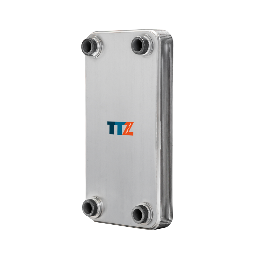 Unsere 100% Edelstahl Plattenwärmeübertrager (ZD-Serie) werden in einem Verfahren hergestellt, in dessen Ergebnis buntmetallfreie Wärmeübertrager entstehen, die einem geschweißten Apparat sehr ähnlich sind. Daraus resultieren dichtungslose Apparate mit einer besonders geringen Ionenabgabe für hoch reine Anwendungen und einer hohen Beständigkeit gegen korrosive Medien (z.B. NH3). Durch ein innovatives Plattendesign führen hochturbulente Strömungen zu einem hohen Wärmedurchgangskoeffizient und somit zu einer hocheffizienten Wärmeübertragung. TTZ verwendet nur qualitativ hochwertige Materialien, welche im Zusammenspiel mit Erfahrung, Engineering und sorgfältiger Fertigung zu einem langlebigen und soliden Wärmeübertrager verarbeitet werden.