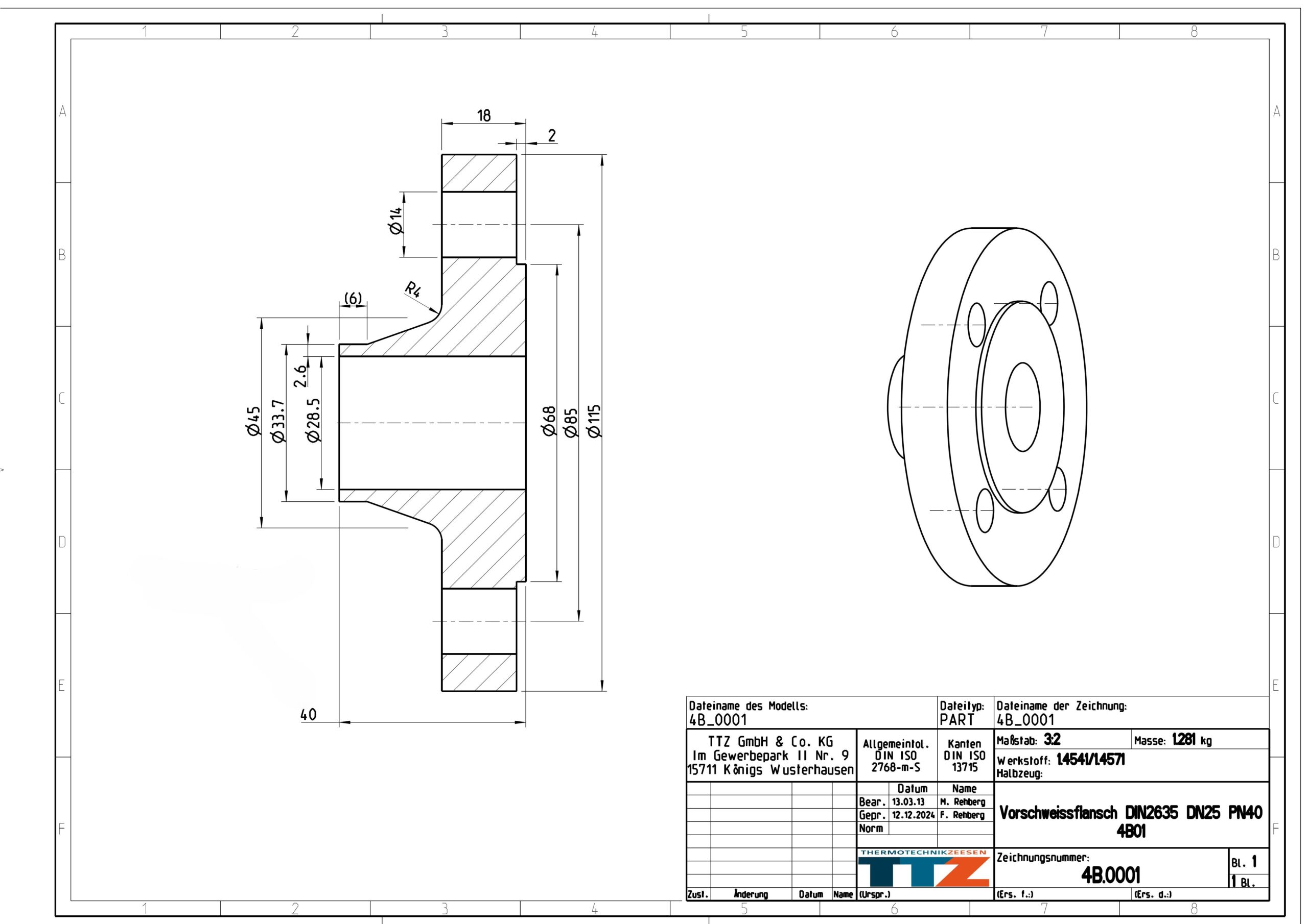 Vorschweissflansche Druckstufe PN40, Form B1, in unterschiedlichen Größen und Werkstoffen.